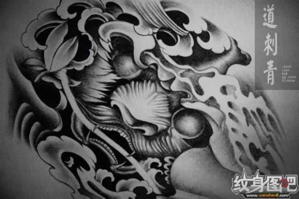 龙纹身手稿_一组老传统黑灰龙手稿纹身图案