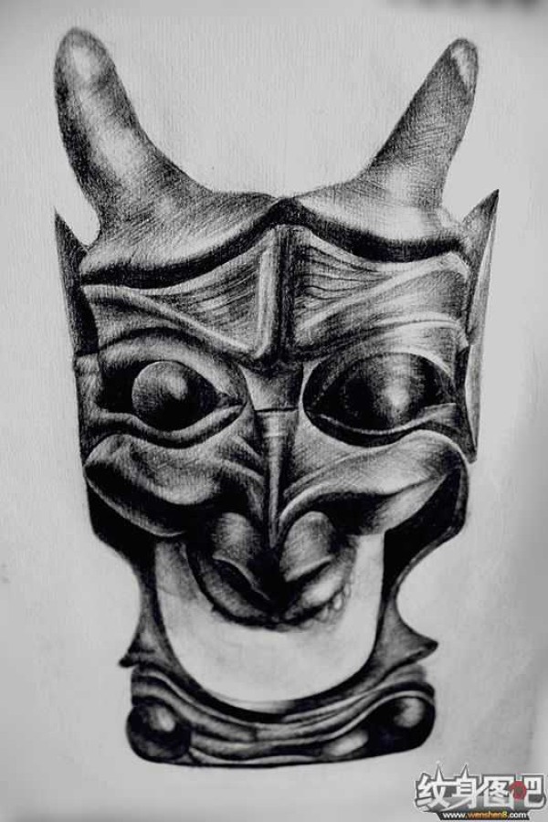 能面万媚纹身手稿_52张日式能剧面具纹身手稿图案素材欣赏