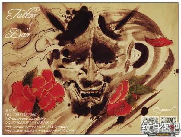 能面万媚纹身手稿_52张日式能剧面具纹身手稿图案素材欣赏