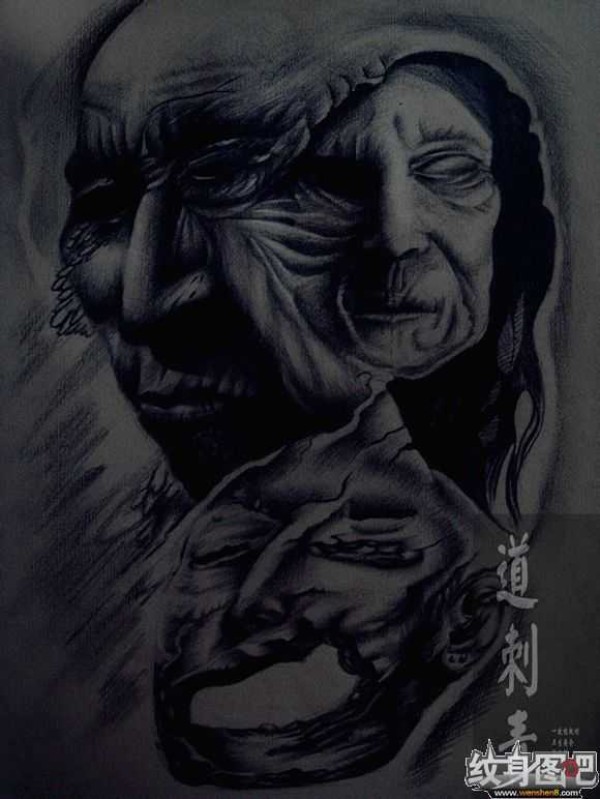 能面万媚纹身手稿_52张日式能剧面具纹身手稿图案素材欣赏