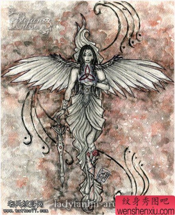 一张天使翅膀文身手稿作品由纹身图吧分享