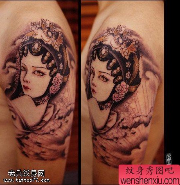 纹身图吧分享一张手臂花旦文身作品