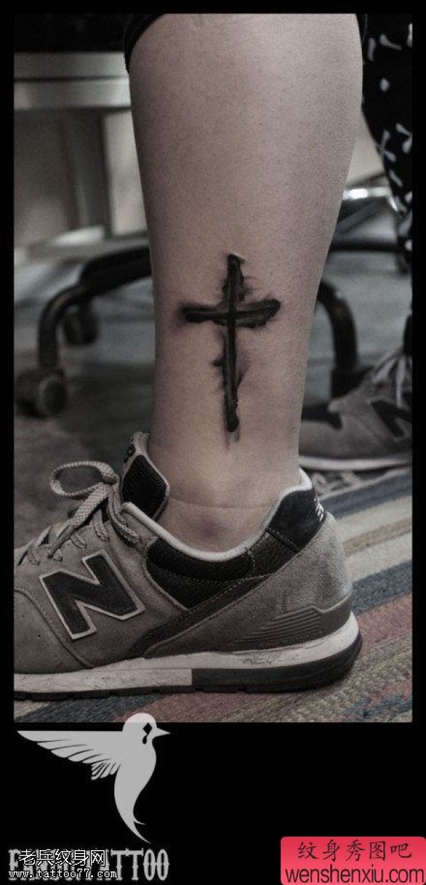 纹身图吧分享一张脚踝十字架文身作品