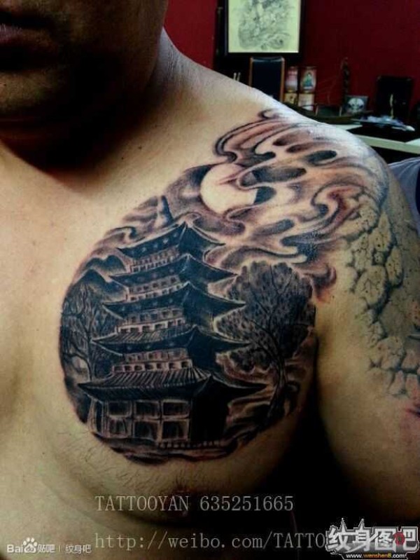 清新淡雅 北京newtattoo纹身店陈洁山水水墨纹身 (一)