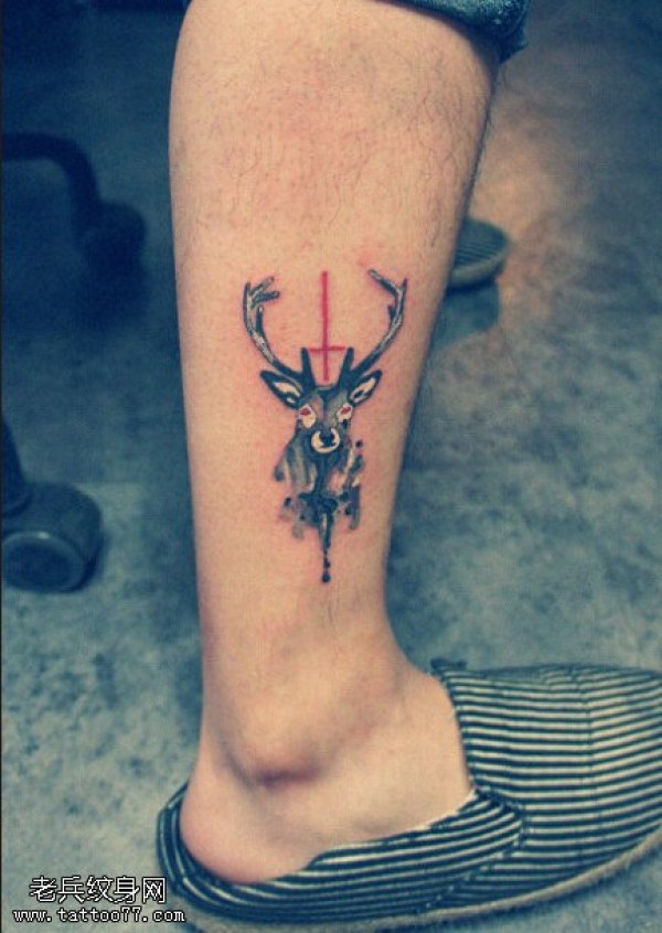腿部羚羊文身作品由纹身图吧分享