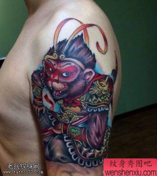 纹身图吧分享一张大臂彩色孙悟空文身作品