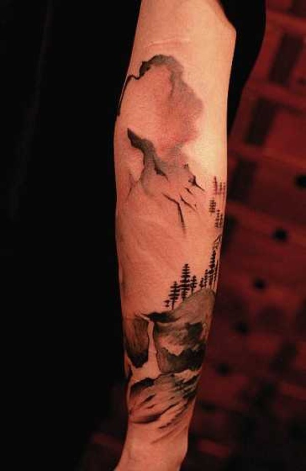 清新淡雅 北京newtattoo纹身店陈洁山水水墨纹身 (一)