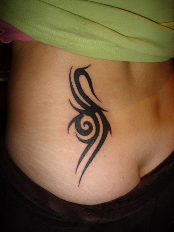 女孩腰部侧面的黑色图腾纹身