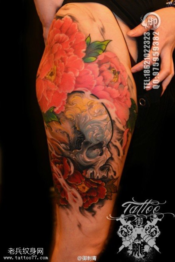 传统花腿纹身--18张传统风格的大花腿纹身图案作品
