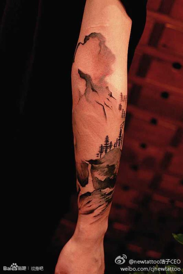 清新淡雅 北京newtattoo纹身店陈洁山水水墨纹身 (一)