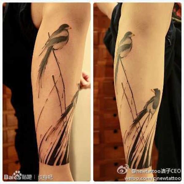 清新淡雅 北京newtattoo纹身店陈洁山水水墨纹身 (一)