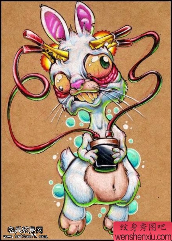 一张彩色卡通兔子文身手稿作品由刺青店分享