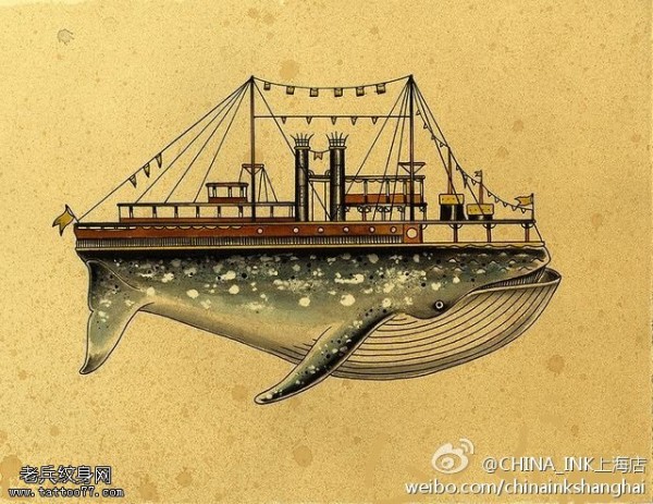 纹身图吧分享一张鲨鱼船文身手稿作品