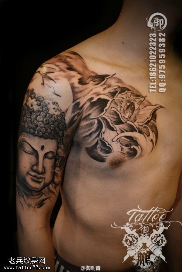 女生肩花纹身_15张女性双肩对称的肩花纹身图案作品图片