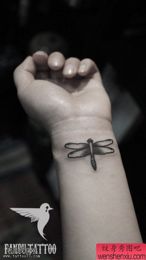手腕小清新蜻蜓文身作品由纹身图吧分享