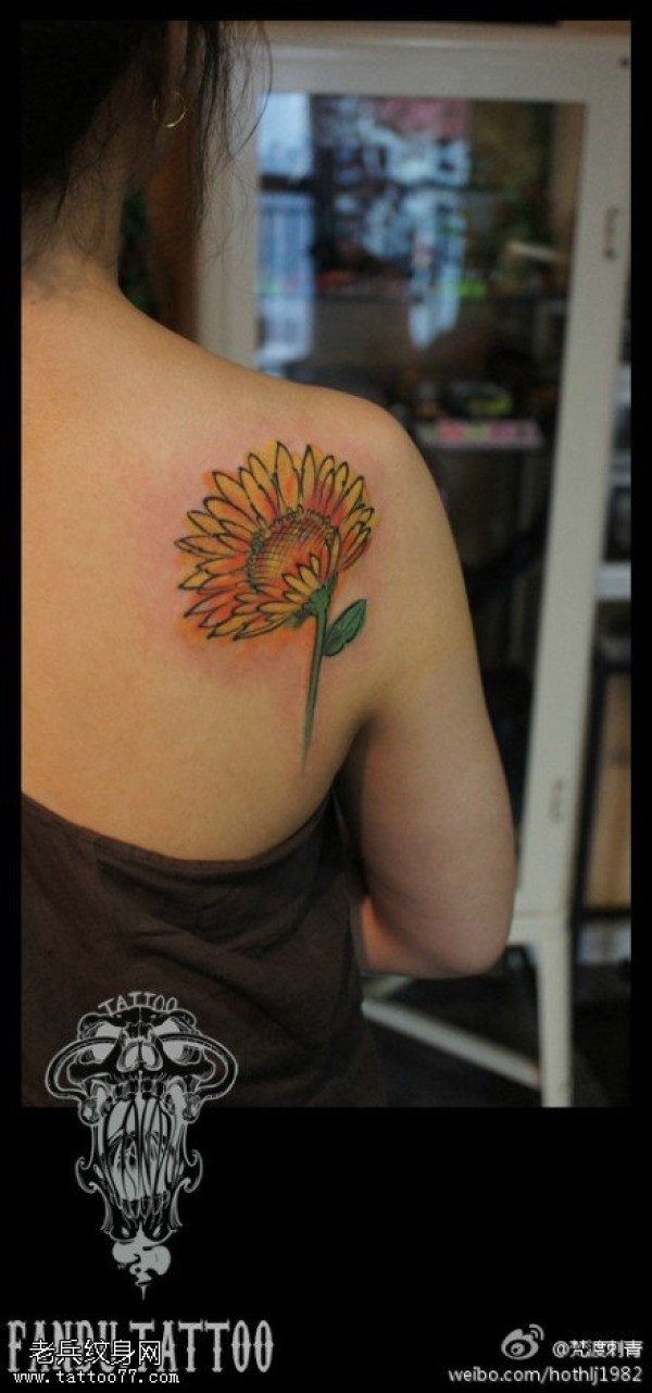 草图感向日葵纹身图案_植物纹身图案大全_纹身图吧