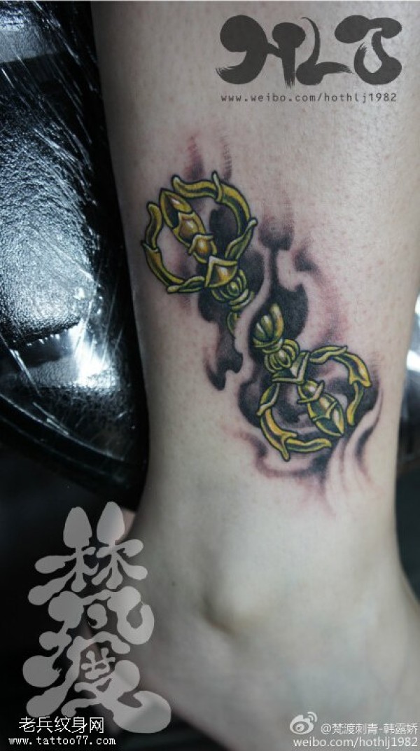 脚踝金刚杵文身作品由纹身图吧分享