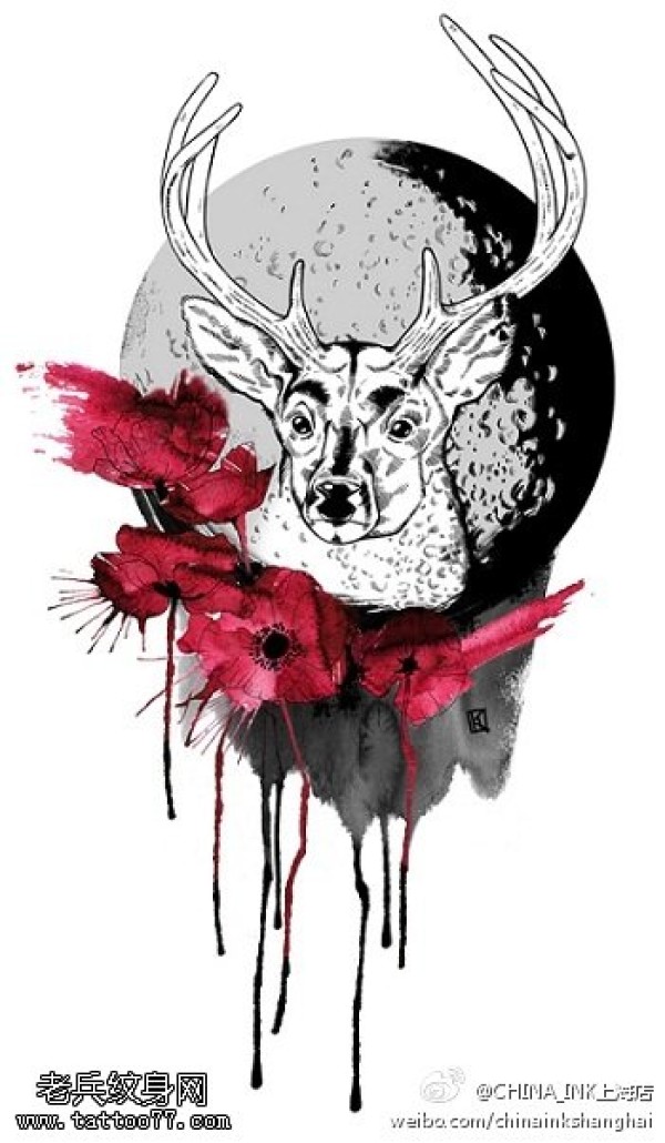 一张泼墨羚羊文身手稿作品由文身馆分享