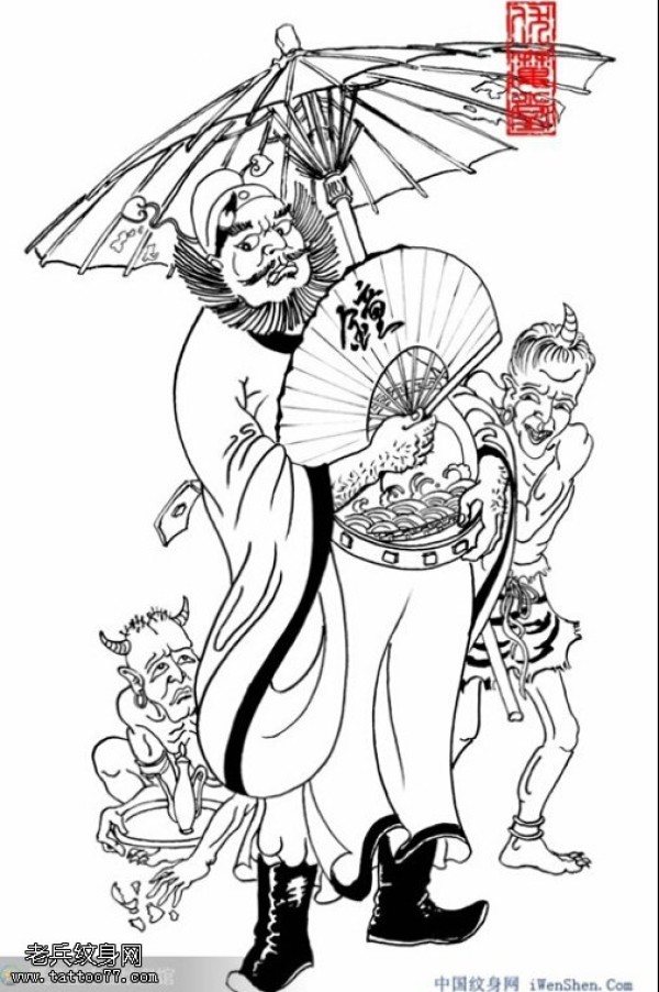 能面万媚纹身手稿_52张日式能剧面具纹身手稿图案素材欣赏