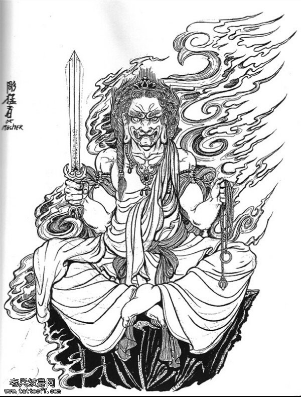 不动明王文身手稿作品由纹身图吧分享