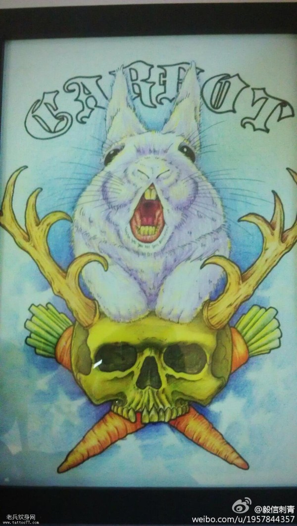 纹身图吧分享一张兔子骷髅文身手稿作品