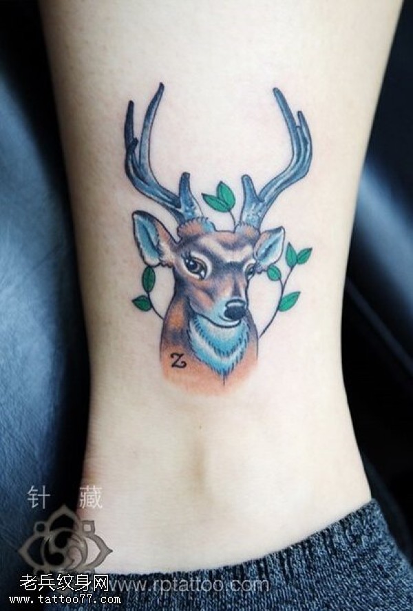 纹身图吧分享一张脚踝彩色羚羊文身作品
