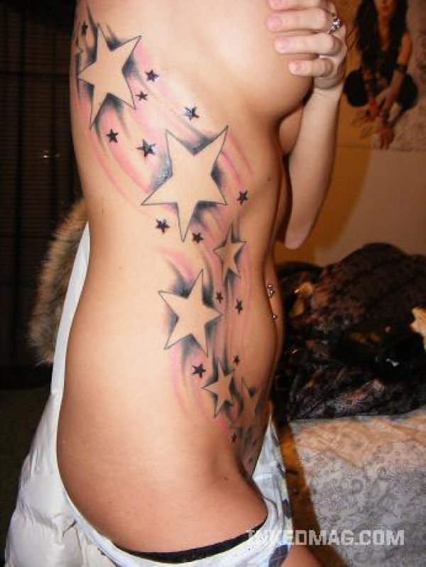 分享一款腰部时尚性感的蝶恋花纹身图案_腰部纹身图案大全_纹身图吧