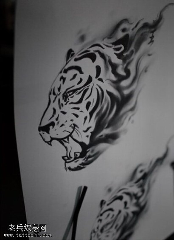 纹身图吧分享一张老虎头文身手稿作品