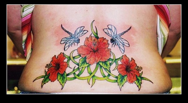 分享一款腰部时尚性感的蝶恋花纹身图案_腰部纹身图案大全_纹身图吧