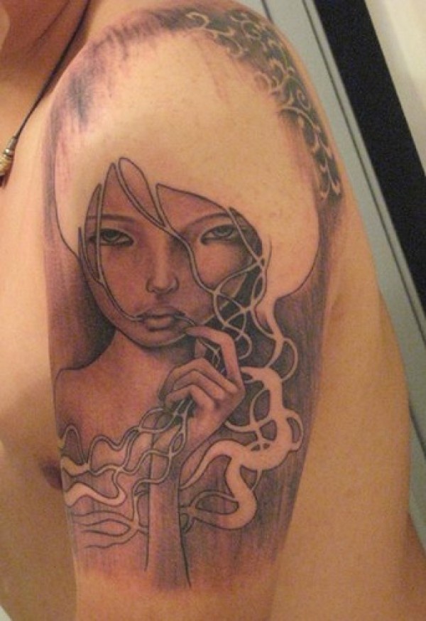 女性肩部肖像刺青_肖像纹身图案大全_纹身图吧