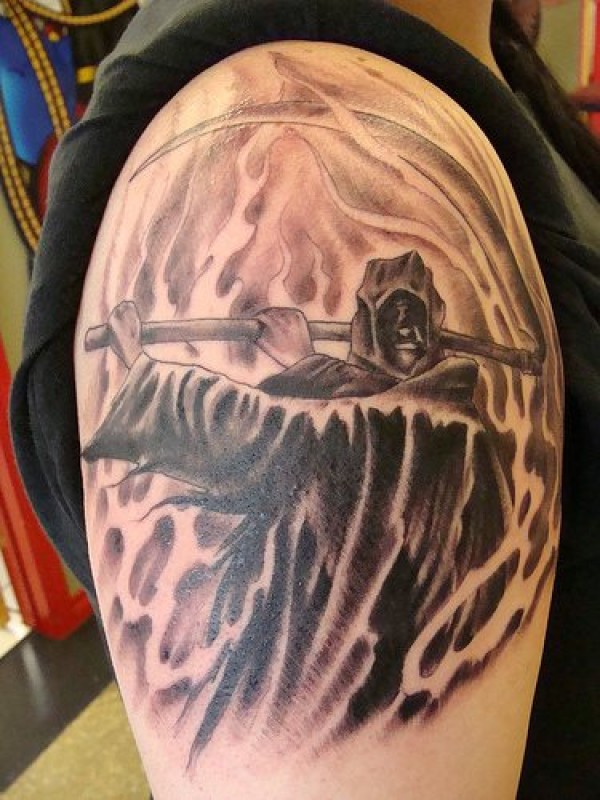 超帅时尚的黑灰骷髅与蛇纹身图案