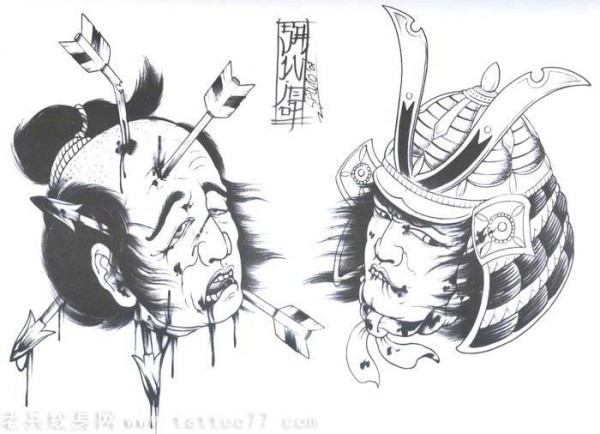 能面万媚纹身手稿_52张日式能剧面具纹身手稿图案素材欣赏