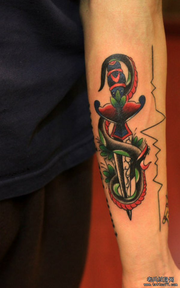 纹身图吧分享一款手臂匕首蛇纹身图案