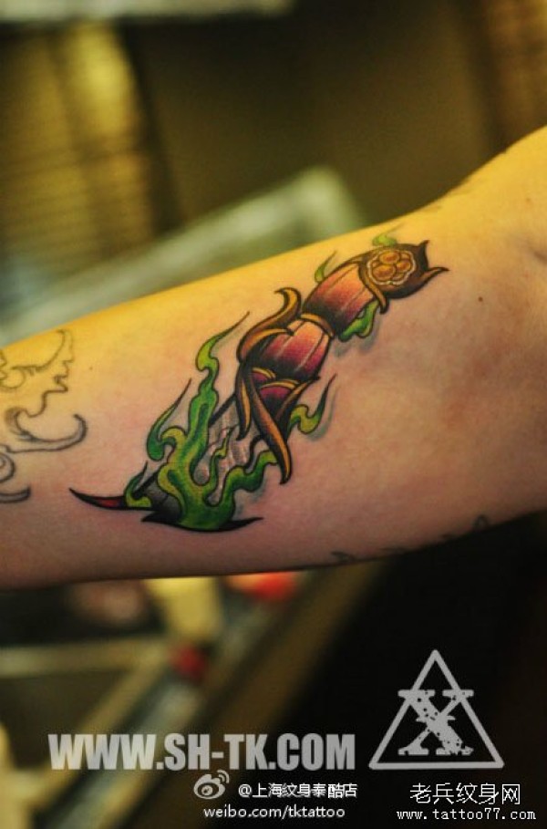 手臂内侧超酷时尚的匕首纹身图案