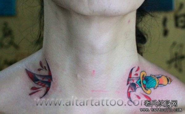 个性脖子上喉结处houjiechu的刺青图片作品