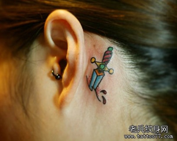 多款女生耳后黑色线条素描文艺小清新小图案纹身图案