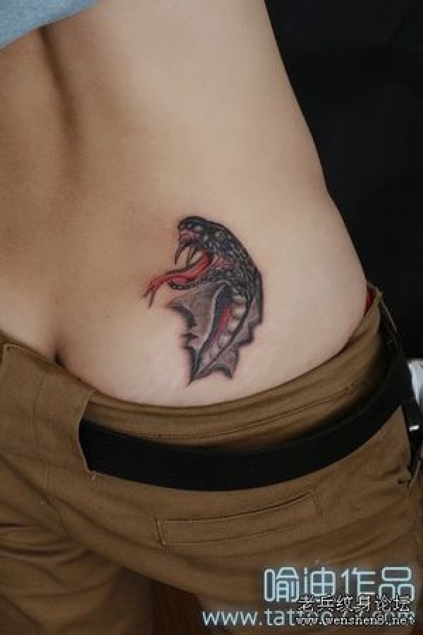 一款美女腰部撕皮蛇纹身图案