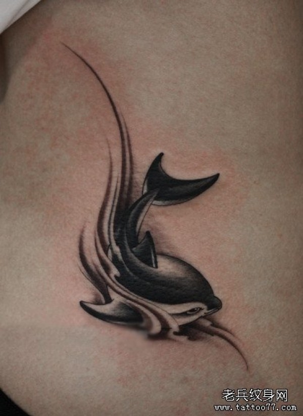 美女腰部可爱的小海豚纹身图案