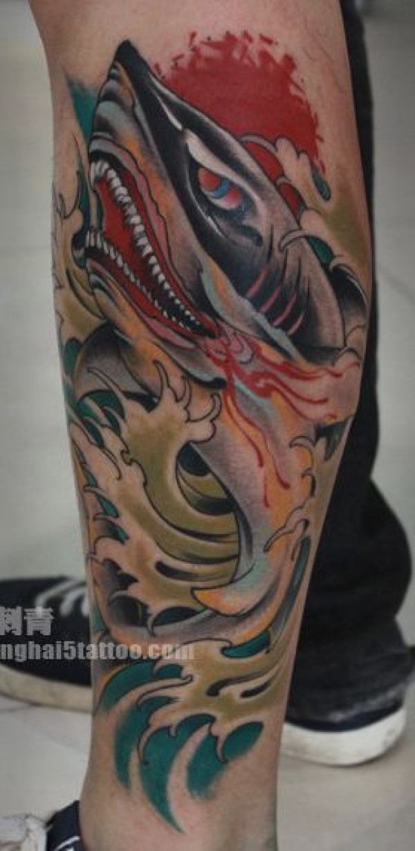 腿部鳌鱼纹身图案_腿部纹身图案大全_纹身图吧
