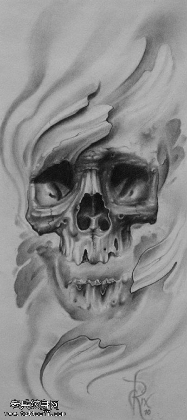 欧美黑白骷髅文身手稿作品由纹身图吧分享