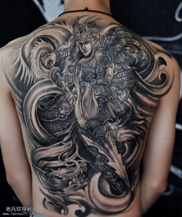 纹身图吧分享一张满背赵子龙文身作品
