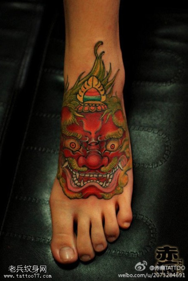 纹身图吧脚背彩色唐狮文身作品
