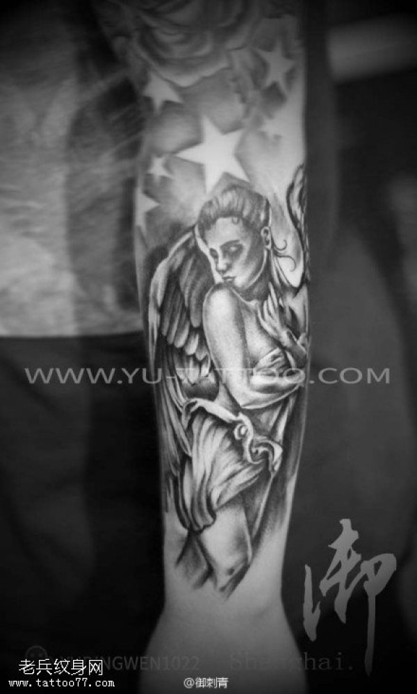 纹身图吧分享一张手臂女郎天使翅膀文身作品