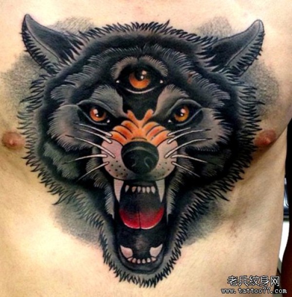一款霸气的欧美狼头纹身图案