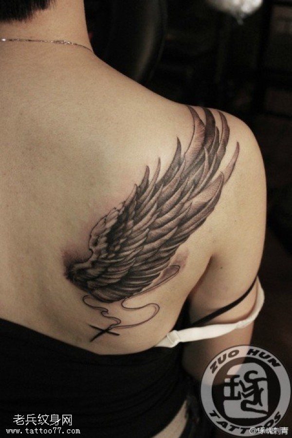 女生肩花纹身_15张女性双肩对称的肩花纹身图案作品图片