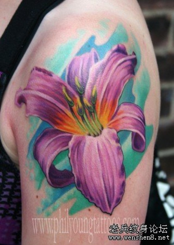 手臂百合花纹身图案