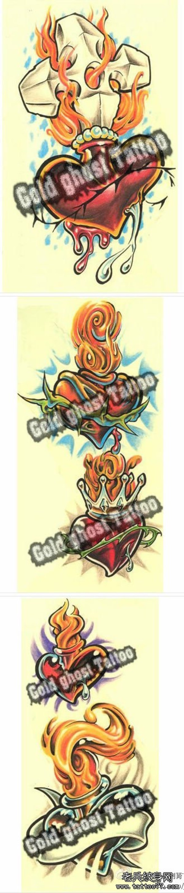 好看的欧美爱心火焰纹身手稿