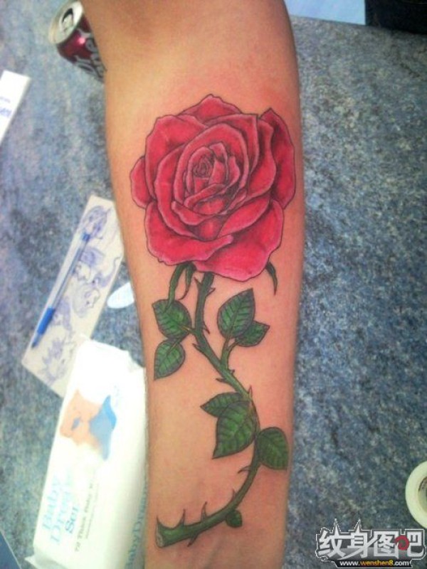 小臂上一枝带刺的玫瑰