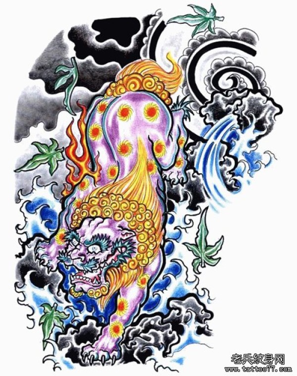 来自日本的日式经典的传统半胛唐狮子纹身手稿图案分析