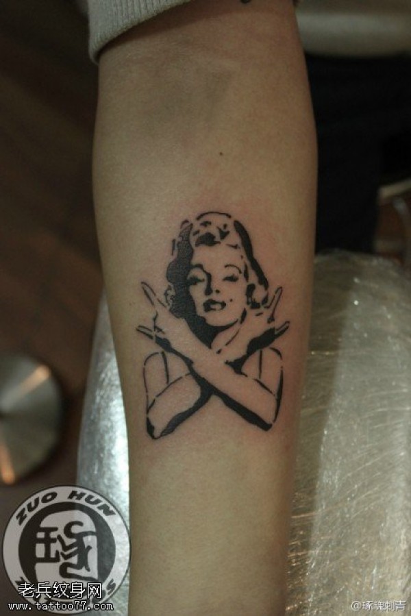 纹身图吧分享一张手臂梦露文身作品